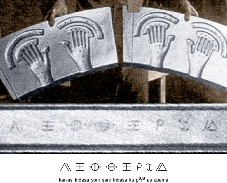 The Atlantean Sanskrit origin of vimana spacecraft seen throughout Earth's skies today is revealed by crashed aerial discs collected by military forces in many parts of the world. The most famous incident of this kind occurred on July 2, 1947 --allegedly near Roswell, New Mexico. Leaked US military documentary photographs and films of the New Mexico disc crash wreckage include dwarf humanoid corpses with large eyes, grey skin and six fingers, as well as fragments of highly reflective metal alloys imprinted with small six-fingered hand consoles and hieroglyphic Archaic Sanskrit inscriptions. Dr. Schildmann's epigraphic decipherment reveals the meaning of a fragmentary text from an I-beam: