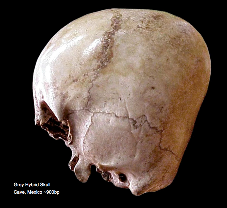 The Starchild grey hybrid skull recovered from a Mexican cave is the only known specimen to present the anomalous metal nanofibers running through the bones' cancellous structures, yet other specimens from the same grey/human hybrid species have been documented. Video and photographic images of another similarly fragmentary skull have recently emerged in South America --among the remains of giants.